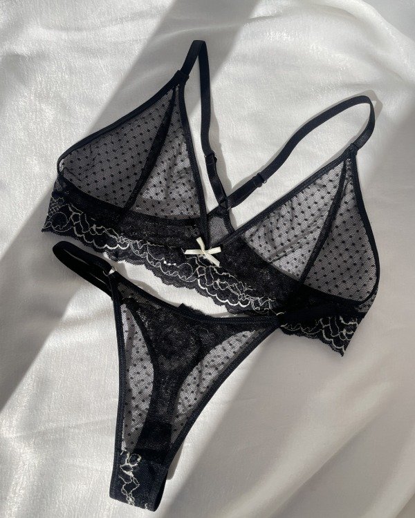 El Corpiño es bralette de microtul y puntilla con diseño de espalda deportiva y breteles regulables