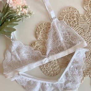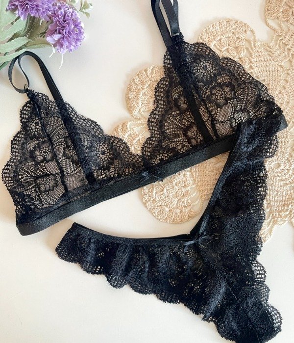 Modelo triangulito confeccionado en puntilla, breteles regulables y broche tipo gancho en la espalda. El talle de la vedetina less es acorde al talle del corpiño